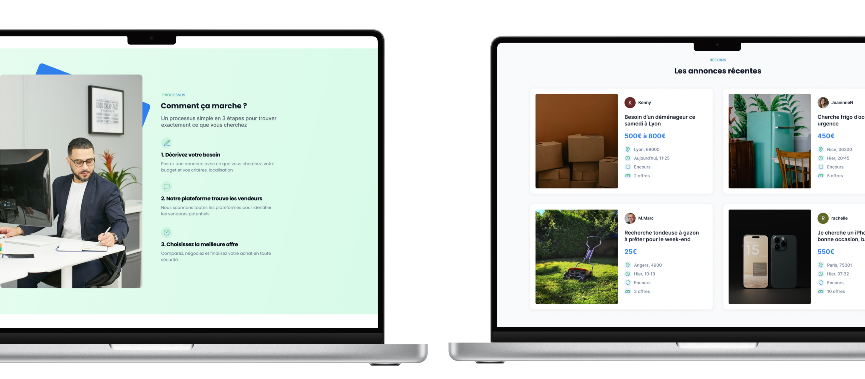 l’utilisateur, depuis la publication d’un besoin jusqu’à la