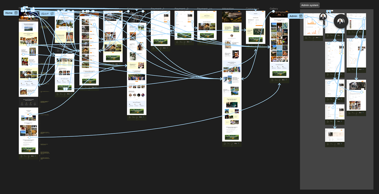 les sections (hébergement, événements, galeries, contact,