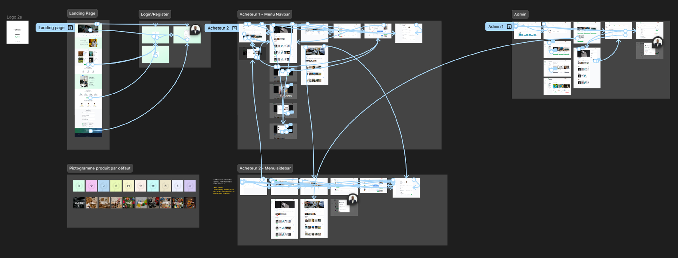 Le prototype Figma de MyNeed illustre le parcours complet de