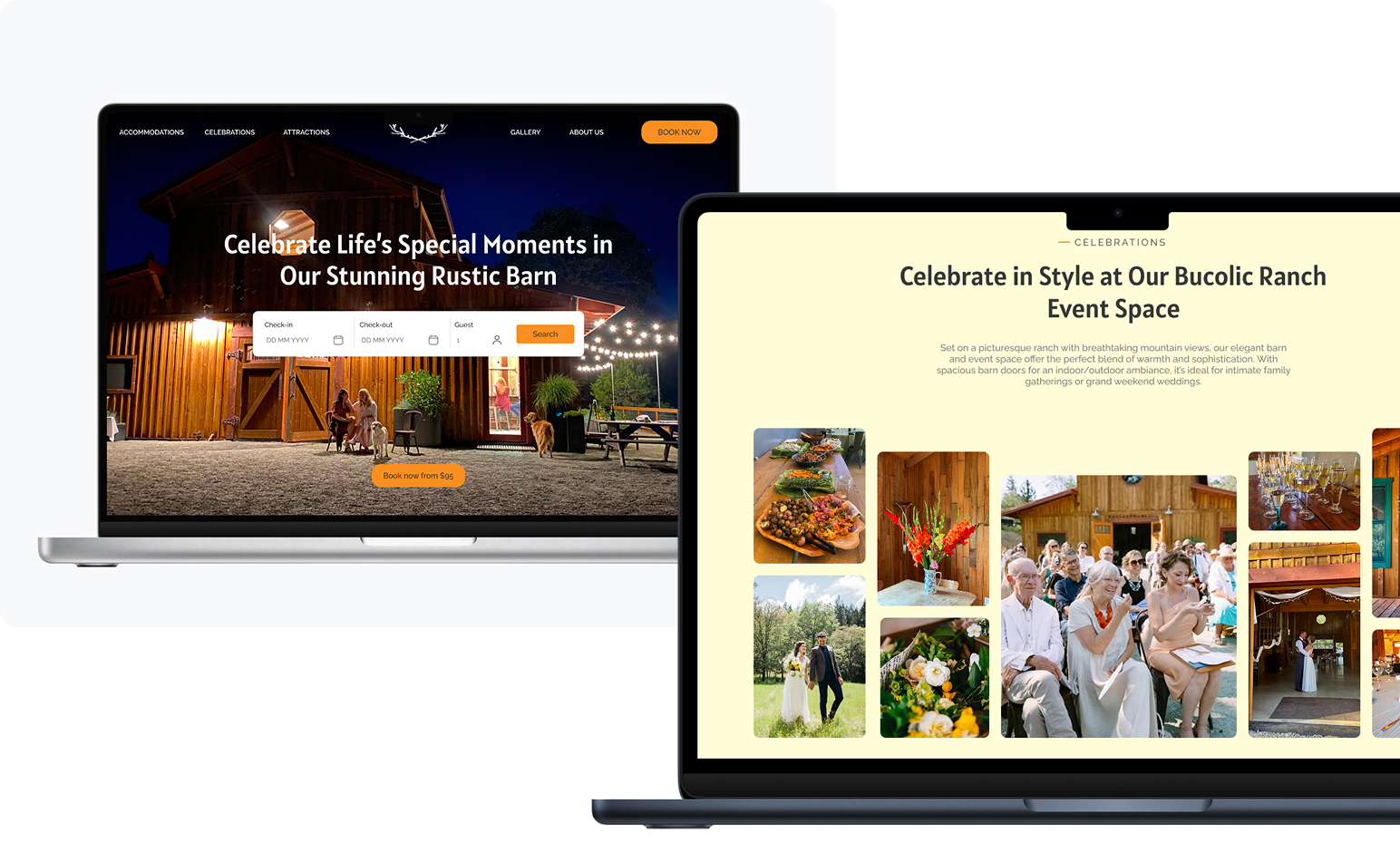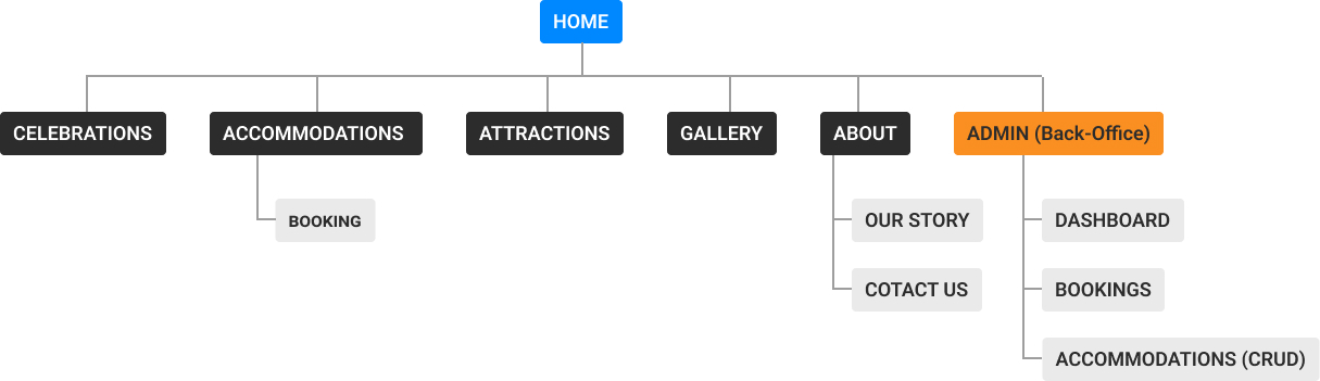 les sections (hébergement, événements, galeries, contact,